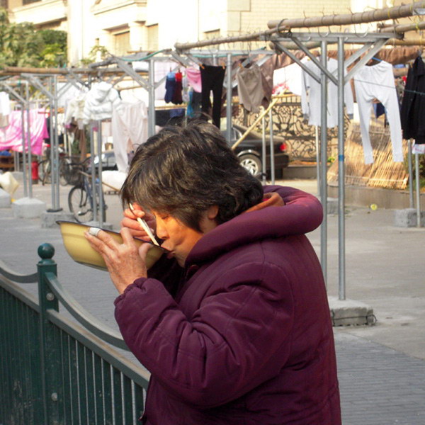 Запала в душу уличная парикмахерская – организованная на скорую руку. Пара стульев, старое зеркало на стене дома, таз со щетками и горячей водой. Тете Ли делают химку, а рядом сидит милая бабулька и развлекает ее вчерашними сплетнями, заодно присматривая за трехлетней девочкой, которая усидчиво сидит на стуле и ждет своей очереди на «химку». Вообще дети в Китае – это маленькие принцы и принцессы, потому что после маоцзэдуновского бума рождаемости, стали жестко ограничивать число детей в семьях. Особенно в крупных городах. Не больше одного на руки. Жестокие права свободы. А что делать, луну еще китайцы не освоили, а население как-то умещать надо, да и качество от количества сильно страдает.
