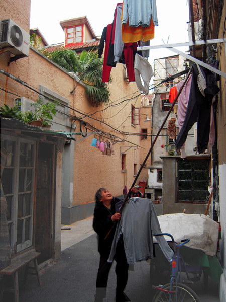 Дома опутаны проводами и бельевыми веревками. Да, все связаны в одну упряжку – дома и люди. На веревках сушатся носки, бюстгальтеры-торпеда тети Ли. Дедушкины трусы рядом с бабушкиными растянутыми панталонами. Китайцы не считают зазорным выставлять грязное белье на показ (они же его стирали!) да и вообще в коммунистической стране нет секретов и все общее. Поэтому заботливая бабушка перевернет бамбуковой палкой свои ночнушки на веревке и заодно соседские треники. Простой они народ и не замысловатый, поэтому рядом на тех же веревках вялиться кусок мяса и еще какие-то национальные вкуснятины.