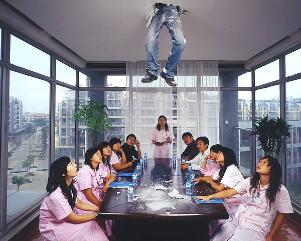 Еще одна необычная выставка фотографий проводится в еще более нестандартном месте — магазине одежды «source». Фотографы Liu Bo и Li Yu оригинально подошли к идеи репортажной съемки, да и название выставки, The Victims, говорит за себя. Они “сфотографировали” различные инциденты, описанные в колонке криминальной хроники. За каждой постановочной фотографией кроется реальная история.