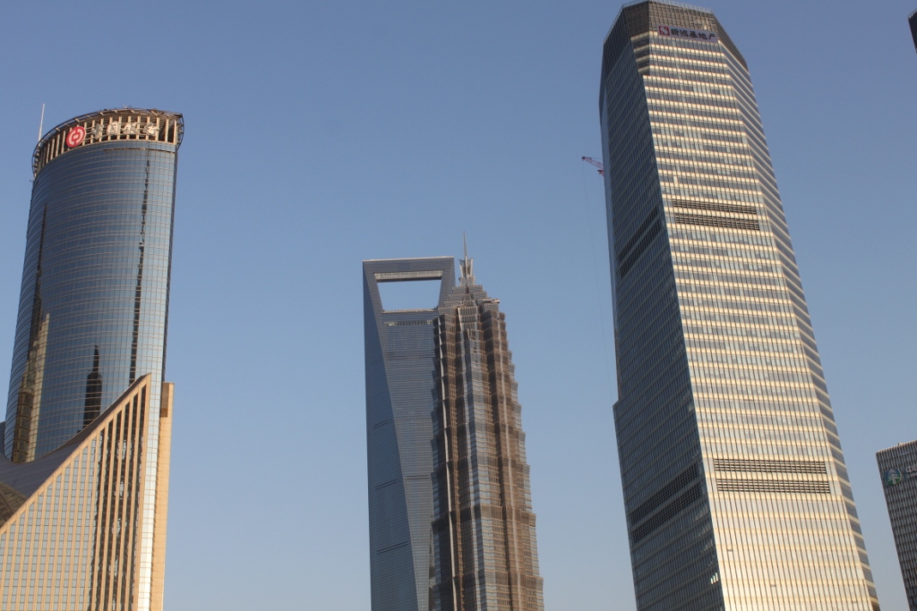 Шанхайские небоскребы, стоящие на изгибе реки Хуанпу, даже с высоты полета представляются постройками иной цивилизации.