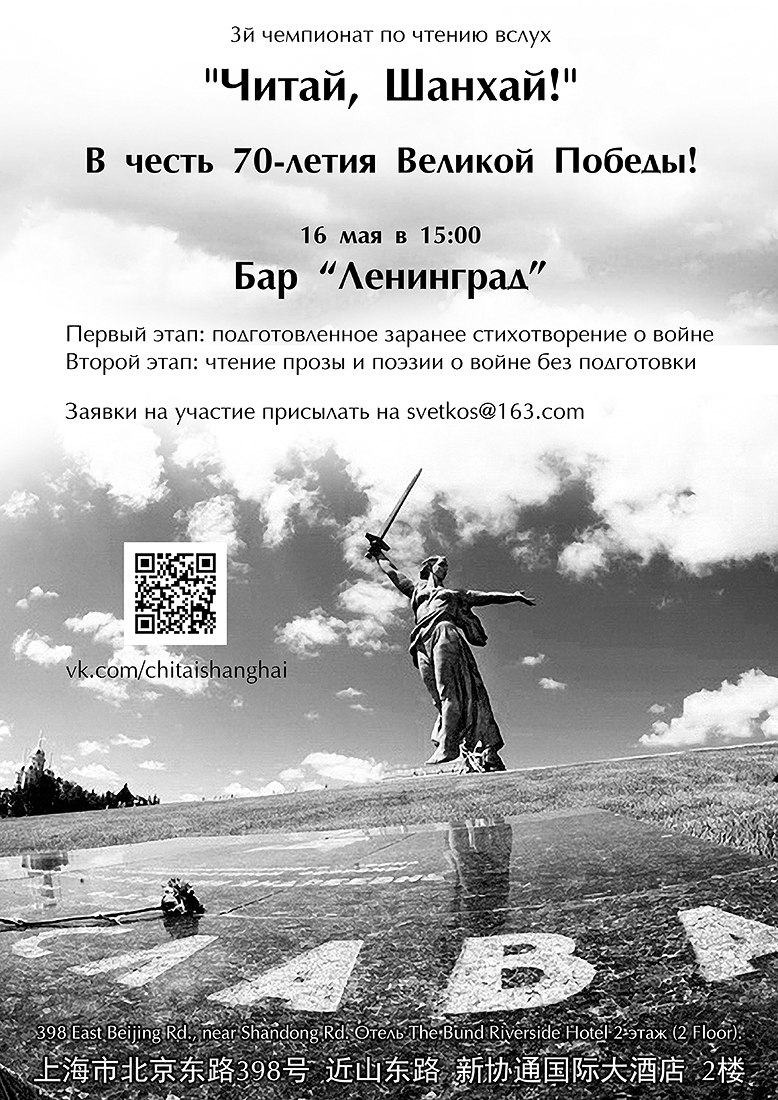 Команда организаторов Третьего чемпионата по чтению вслух «Читай, Шанхай!» посвятила его важной для всех нас дате — 70-летию Победы в Великой Отечественной войне.
