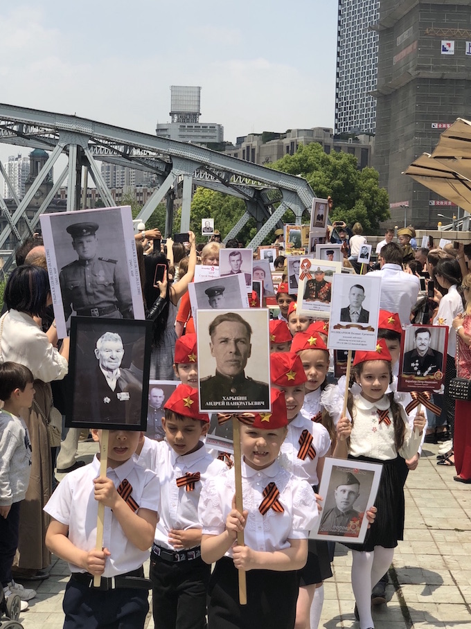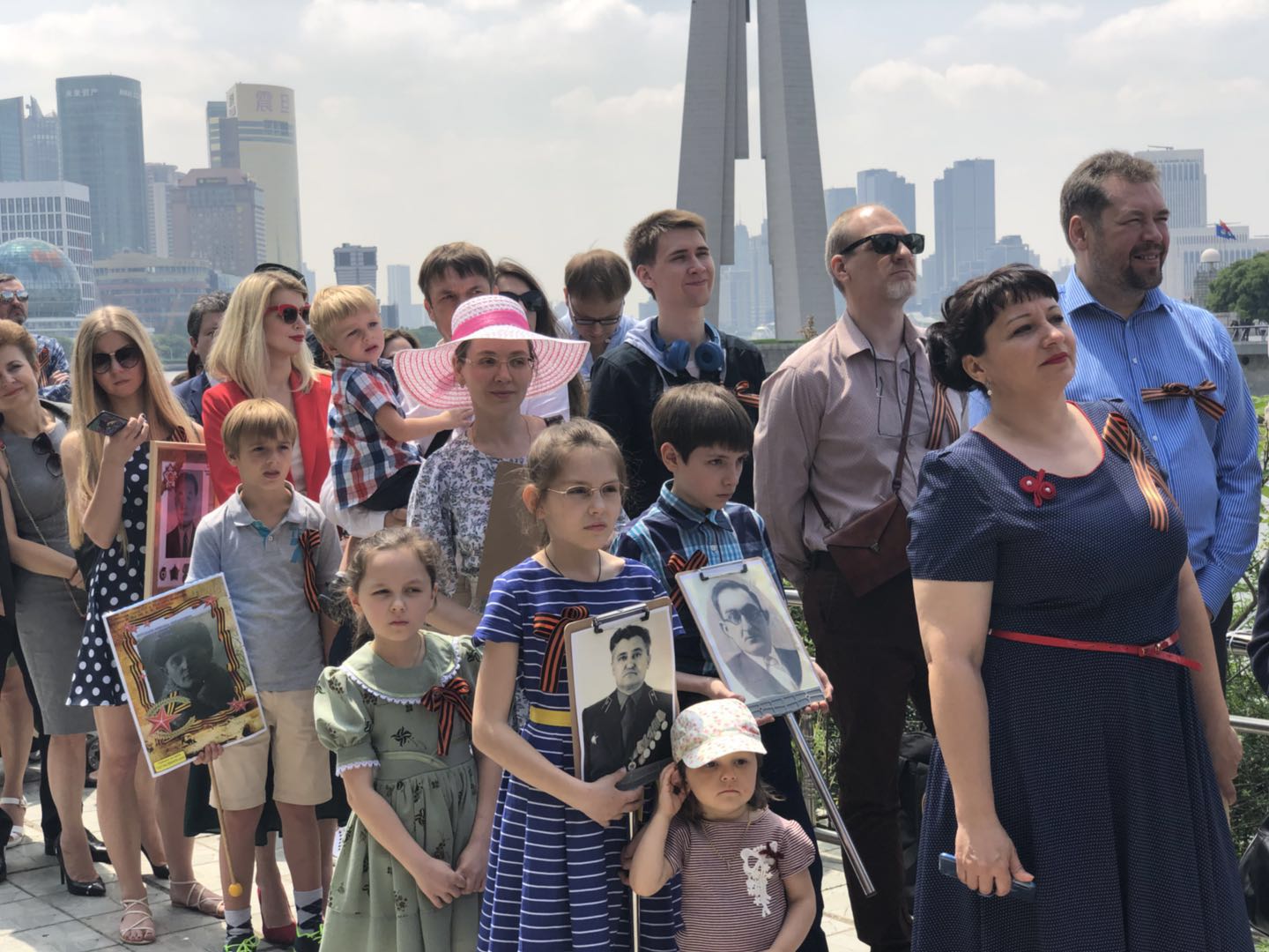 Главным событием стало шествие «Бессмертного полка», состоявшееся на открытой площадке на крыше одного из зданий на территории генконсульства, наблюдать которое могли со знаменитого моста Вайбайду и с набережной Вайтань простые горожане. Местное законодательство не позволило провести шествие в самом городе, однако, несмотря на ограничения, мероприятие получилось ярким, интересным и стало самым масштабным за все время организации подобных акций в Шанхае.