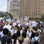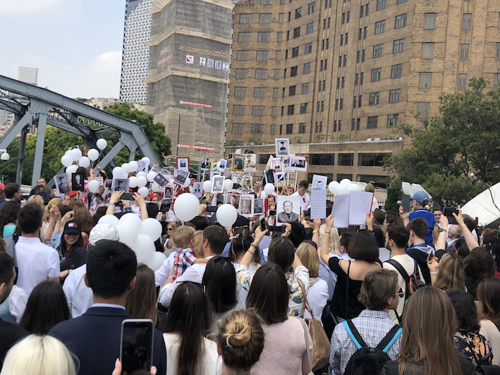 Завершилось мероприятие запуском в небо белых воздушных шаров, что привлекло внимание местных жителей, поспешивших запечатлеть все происходящее на камеры своих мобильных телефонов.