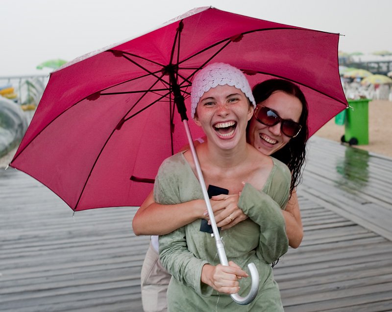 А вот светло стало за каких то 30 секунд, после чего пошел дождик, а затем настоящий ливень. Это не помешало нам искупаться в море, вода была теплее чем дождь. Все были мокрыми, но довольными.