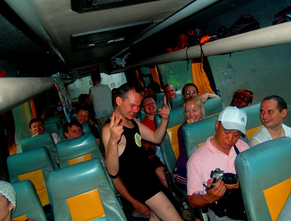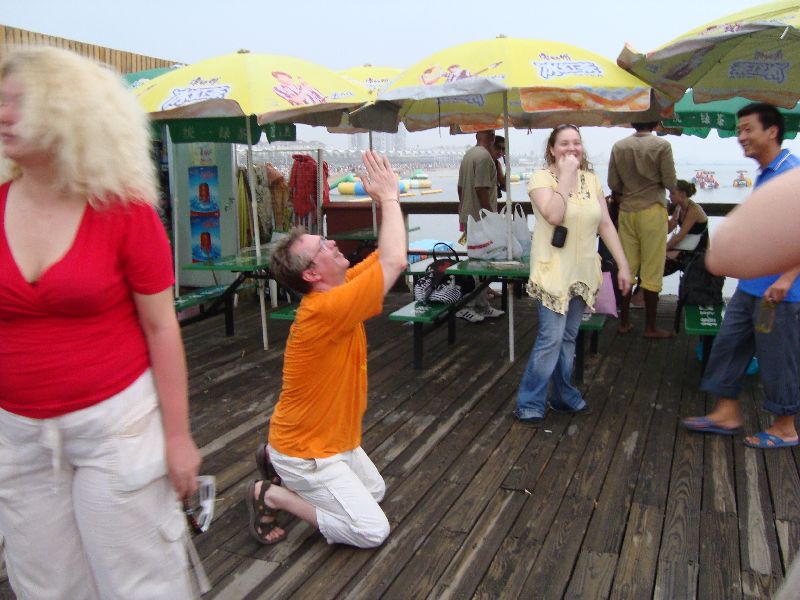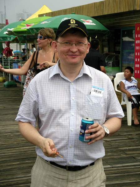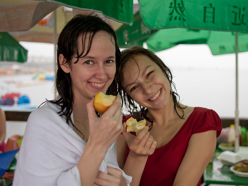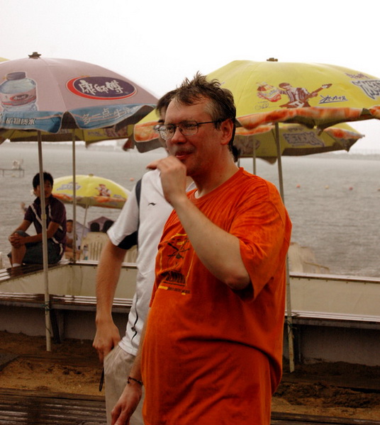 Затем промокшие, но веселые все вернулись в автобус и направились искать ресторан. Жители Цзиньшаня должно быть были очень удивлены, когда посреди улицы останавливался автобус, заполненный иностранцами, а из него, в одних трусах, выбегал Алик Крисской и на чистейшем китайском спрашивал: Где тут можно поесть?