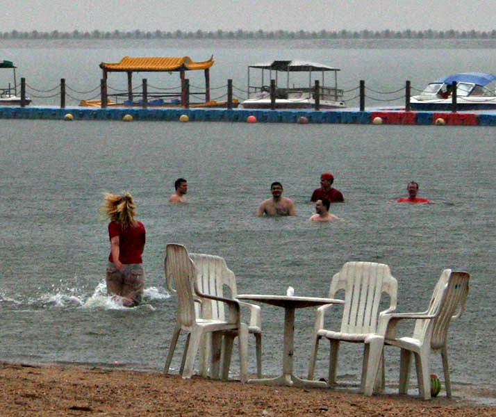 После затмения и купания под дождём, народ играл в волейбол, другие подкреплялись заготовленными запасами еды и напитков.