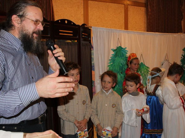 Ну и наконец, 7 января – Рождество Христово!!! Солнышко, как будто чувствовало всю радость происходящего! Оно не только светило, но и дарило тепло, призывая всех людей праздновать это великое событие – рождение Бога нашего Иисуса Христа и дарить радость и любовь ближним. После рождественской службы и проповеди о. Алексия все присутствующие перешли в отель, расположенный напротив консульства. Маленькие артисты не ожидали увидеть, такое количество народа и заметно волновались. А надо заметить, что  встретить этот праздник в кругу соотечественников захотело немало людей –  около ста человек. Это был аншлаг.  Малыши, выйдя на сцену, и видя множество устремленных на них глаз, краснели, бледнели, но надо отметить их стойкость,  продолжали играть свою роль. Они молодцы! По окончанию спектакля о. Алексий раздал ребятне рождественские подарки и еще раз поздравил взрослых. После чего началось чаепитие и небольшой фуршет, на котором люди делились друг с другом своими впечатлениями. А поговорить действительно было о чем, ведь и на Родине не так много мест, куда можно отвести детей, чтобы они знакомились с Библией, житиями святых,  слушали рассказы об иконах и богослужениях. Узнавали, что такое прощение, послушание, нравственность, забота о ближнем.  А уж в чужой стране, об этом можно только мечтать, но дал Бог, и  все получилось. И родители, подходя к руководителю  Воскресной школы, не только благодарили за спектакль, но и спрашивали когда и куда можно привести своих деток на занятия.  Так что надеемся, что с Божьей помощью Воскресная школа «Колосок» пополнит список своих воспитанников.