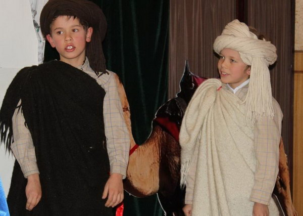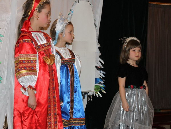 Сцена из спектакля 1. Марфа, Маша и АнгелыВ светлый праздник Рождества Христова в Шанхае состоялось знаменательное, а если быть точнее, замечательное и радостное событие – первое выступление театральной студии Воскресной школы «Колосок», организованной при поддержке Православной общины г. Шанхая и Русского клуба в Шанхае. К этому празднику ребята готовились четыре месяца. Каждую субботу они собирались на занятия в Воскресной школе. После совместной молитвы на начало учения и благословения о. Алексия, малыши слушали педагога и участвовали в занятиях по Закону Божьему, пытаясь через свои рисунки и рассказы постичь такие сложные понятия как добро и зло. И только потом, после совместного чаепития, они приступали к репетициям рождественского спектакля. Надо заметить, что все происходило довольно непросто, потому что артистами ребята быть хотели, а вот учить слова и слушать режиссера не очень. Но по мере приближения праздника, когда начали появляться костюмы и декорации, малышня начала понимать всю ответственность приближающегося события. За декорации и костюмы отдельное спасибо хочется сказать родителям, которые отдали немало своих сил и времени на их изготовление.