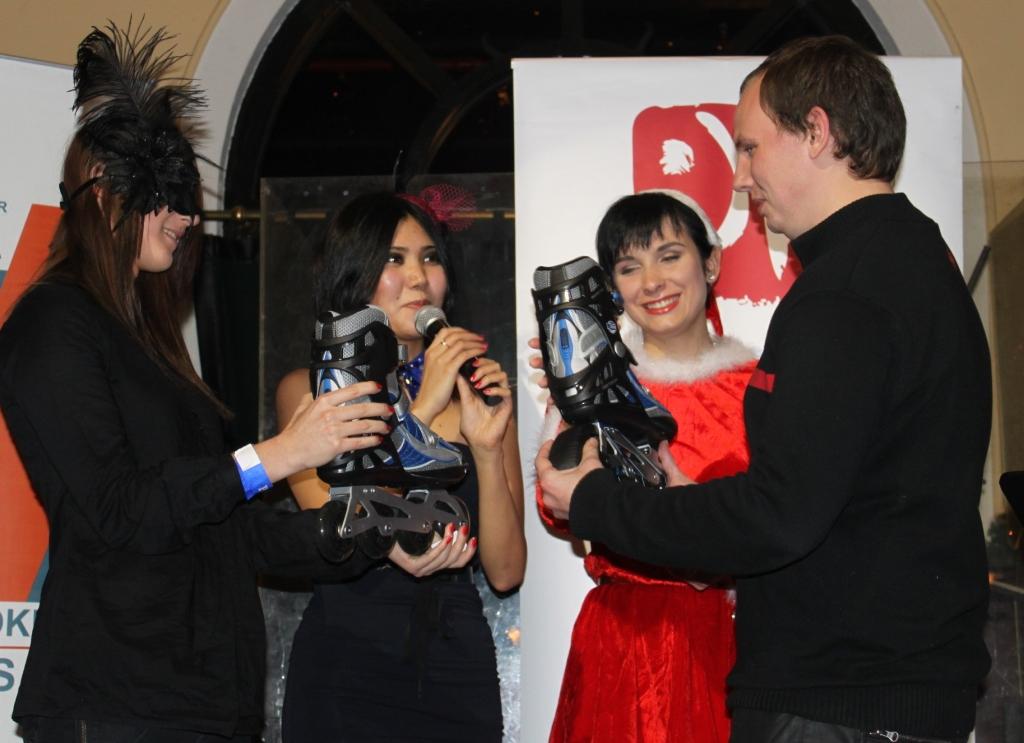 По сложившейся традиции, во время вечеринки были разыграны в лотерею предоставленные спонсорами многочисленные ценные призы, главным из которых стала путёвка на двоих на о. Боракай (Филиппины) от фирмы Сучжоу Янша Интернэшнл Трэйд Лтд. (искренне благодарим за этот приз директора компании Олесю Бондаренко). Любопытно, что приз от компании ABBYY – 150 электронных словарей, получил один из немногих присутствующих в зале иностранцев, запомнившийся своей байкерской кожаной курткой и яркой наколкой на плече со словами «Россия» и «Вологда». Забавно также, что большой спортивный рюкзак от компании «Спортмастер» выиграл один из самых маленьких участников вечеринки семилетний Леша Чупраков.