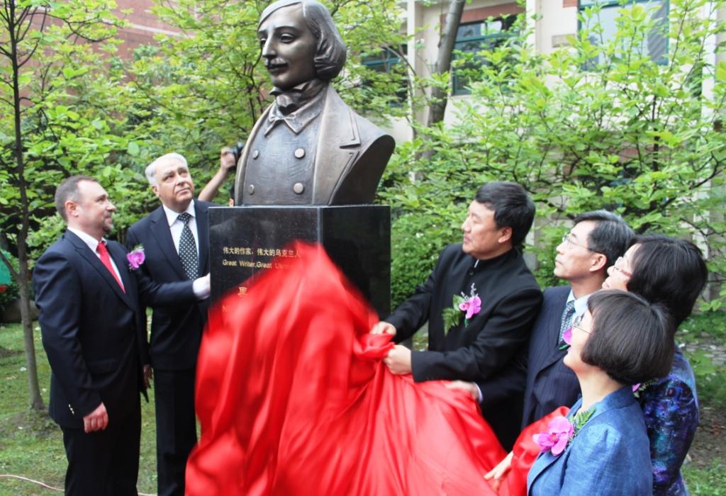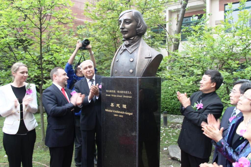 Памятник Н.В. Гоголю, изготовленный известными украинскими скульпторами — супругами Александрой Рубан и Виктором Липовкой, установлен на Аллее мастеров комедийного жанра на территории Шанхайской театральной академии.
