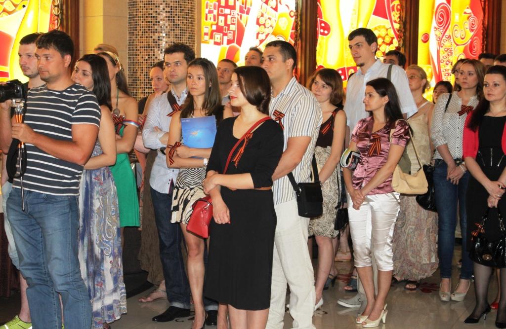 Все они получали на входе символ праздника – георгиевские ленточки. В Шанхае данную акцию РКШ проводит ежегодно с 2009 года. За прошедшие годы клубом были распространены среди соотечественников сотни ленточек. В 2012 году наши волонтеры продолжили раздачу ленточек черно-оранжевого цвета в память о подвиге дедов и прадедов, сокрушивших нацистов в годы Великой Отечественной войны. Девиз акции был прежний – «Я помню, я горжусь». Цель ее — консолидация русскоязычного сообщества, сохранение памяти о Великой Отечественной войне 1941—1945 гг.