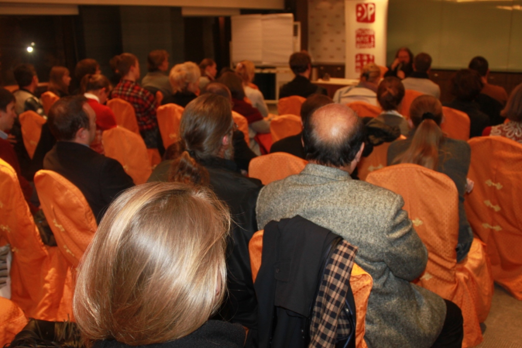 На встречу пришло более 60 человек. В основе своей это были люди неверующие, только ищущие свой путь к Богу, либо интересующиеся местом православия в жизни российского общества.