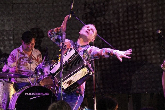 Советская и украинская рок-группа «ВВ» была основана в 1986 году. Музыка группы испытала заметное влияние рок-н-ролла, панка и разнообразных этно-стилей. В 90-хх «ВВ» провели гастроли по европейским странам, где их славянская экзотика пришлась по вкусу. Особенно шоу в исполнении Олега Скрипки полюбилось французам, которые в марте 1990-го предложили группе контракт на выпуск нескольких компакт-дисков. В 2000-х «Вопли» побывали на гастролях в Израиле и США, а также выступили перед американским президентом Биллом Клинтоном во время его официального визита на Украину.Концерт в Шанхае стал первым выступлением группы в Поднебесной. Он был приурочен к 15-летию РКШ. Во время концерта лидер группы Олег Скрипка поздравил Русский клуб в Шанхае с юбилеем и исполнил в нашу честь свой знаменитый хит «День рождения» («День народження»).