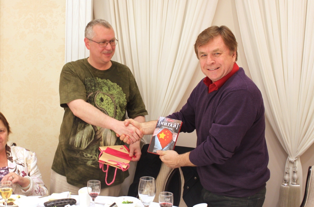 В тот же день состоялся торжественный обед с участием членов жюри, гостей и участников Конкурса, на котором была возможность не только отведать блюда изысканной шанхайской кухни, но и попеть песни под гитару. Победитель конкурса Владимир Марченко подарил председателю жюри и Татьяне Веденеевой по экземпляру своей книги «Китай: как стать сюнди», вышедшей недавно в России в издательстве «Амфора». Отдельным заключительным подарком собравшимся стало исполнение композитором Григорием Гладковым своей новой ранее нигде не звучавшей песни, посвященной А.Н.Вертинскому. Официальное ее премьерное исполнение композитор пообещал придержать до Второго Конкурса который, как хочется верить, пройдет в будущем году.