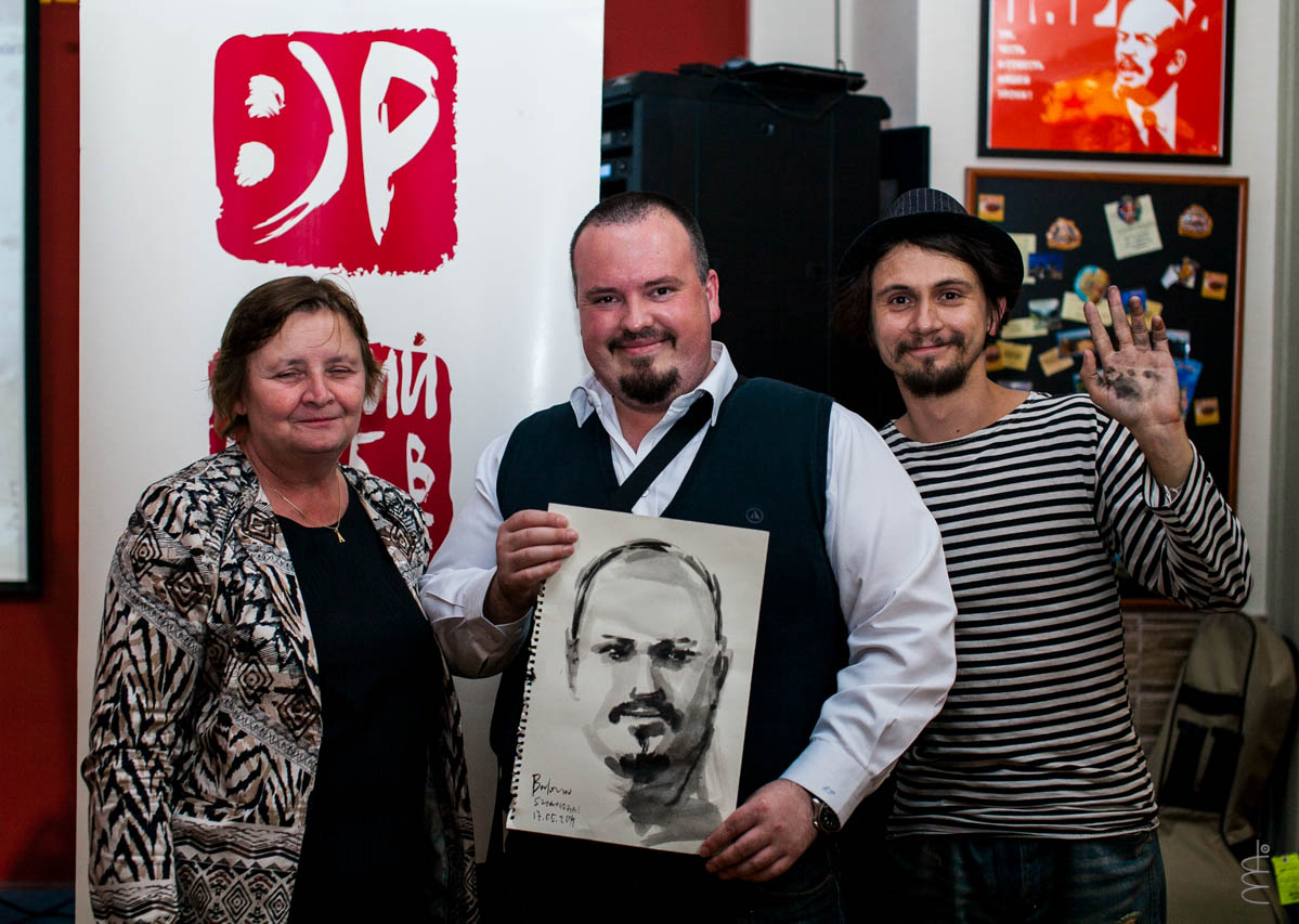 А наш художник Сергей Баловин, недавно вернувшийся из кругосветного путешествия в родной Шанхай, одаривал участников конкурса портретами, которые рисовал тут же, в зале.
