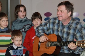В феврале 2012 года автор знаменитой «Пластилиновой вороны» и многих других шлягеров, знакомых многим из нас с детства (а может и не с детства), был гостем РКШ. Он выступил на очередном «квартирнике» перед взрослыми членами Клуба, преподал детям нашей воскресной школы веселый урок, состоящий из целого каскада песен, размышлений и шуток, а также дал интервью председателю РКШ Михаилу Дроздову: