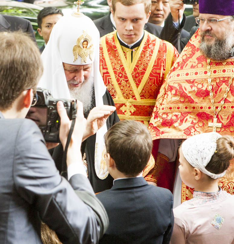 Несколько сотен человек собралось в среду на литургии, которую Патриарх Московский и всея Руси Кирилл совершил в среду в кафедральном соборе в честь иконы Божьей Матери «Споручница грешных» в Шанхае.