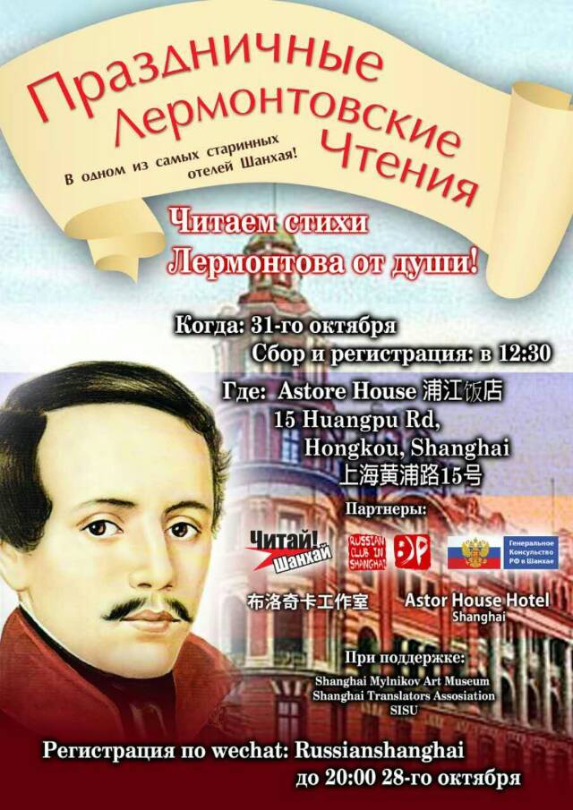 31-го октября в 12:30 в старейшем отеле Шанхая пройдут Праздничные Лермонтовские Чтения!