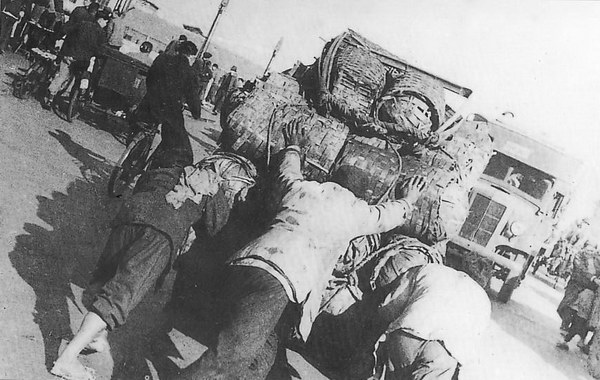 Чтобы далеко не ходить за примерами, посмотрите как работают в портах китайские бурлаки, вёсельщики и рулевые на джонках, приглядитесь какие тяжести: кирпичи, камни, железо, тащат на одном колесе, «уиль-баро», эти, с виду довольно щуплые, люди.