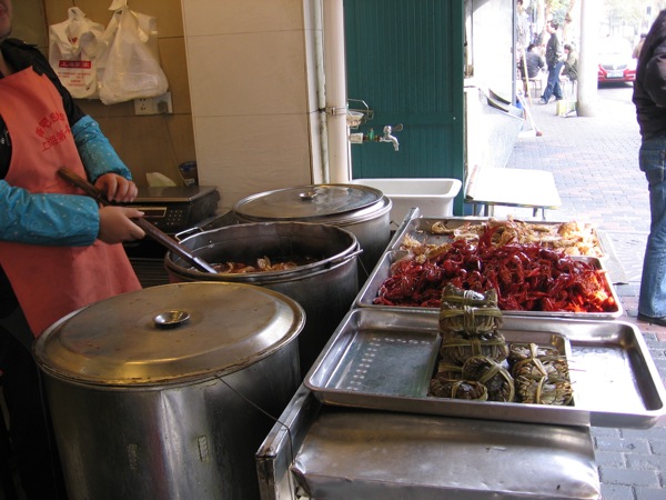 Первые два места находятся недалеко от центра и их можно посетить в один день, а после их осмотра отправиться погулять по старому городу или, точнее, по тому, что от него еще осталось – это уж чтобы сполна вкусить шанхайской старины. И кстати, перед посещением достопримечательностей (или после – тут уж на ваше усмотрение) хорошо бы подкрепиться: на улице Shouning, которая как раз ведет к улице Dajing со стороны улицы Xizang почти на каждом шагу продают и готовят различные морепродукты преимущественно креветочного вида, так что эту улицу можно смело назвать креветочной. Если не побоитесь отведать приготовленных тут же при вас креветок в одной из многочисленных забегаловок, не забудьте надеть выданный полиэтиленовый фартук и перчатки, чтобы не испачкаться – креветки очень сочные и вкусные.