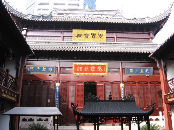 А выйдя из павильона и повернув налево, вы тут же окажетесь перед воротами настоящего даосского храма Белых облаков. Знаменитый и очень большой храм с таким же названием есть в Пекине, можно сказать, что шанхайский храм – это маленький-маленький брат пекинского храма. Храм в Шанхае был сооружен в 1882 году во время правления династии Цин (1644-1912) как мемориал в честь одного из восьми бессмертных даосов – Люй Дунбиня. Прежнее название храма- Lei Zu, в 1888 году он стал называться храм Белых облаков, а в 2006 году перемещен из юго-западной части старого города туда, где и стоит по сей день — на улицу Dajing. В храме, как и в соседнем Dajing павильоне, совсем немноголюдно. Возможно, кроме вас и монахов в темно-синих робах там вообще никого не будет и вы ощутите спокойствие этого места под звуки распеваемых монахами молитв.
