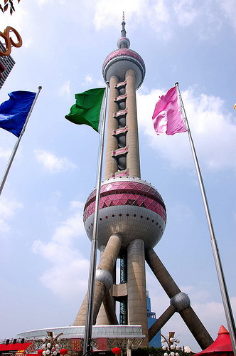 В этом году исполняется 15 лет телевизионной башне «Oriental Pearl Tower» (东方明珠电视塔, «Восточная жемчужина») в Шанхае. Когда-то она была самым высоким зданием в районе Пудун, но позже в 1998 году появилась башня «Цзинь Ма́о» (金茂大厦, буквально «Башня „Золотое процветание“), а еще позже в 2008г. «Шанхайский всемирный финансовый центр» (上海环球金融中心), ставший самым высоким небоскребом этого района и третьим в мире, после «Тайбэй 101» и «Бурдж Дубай».